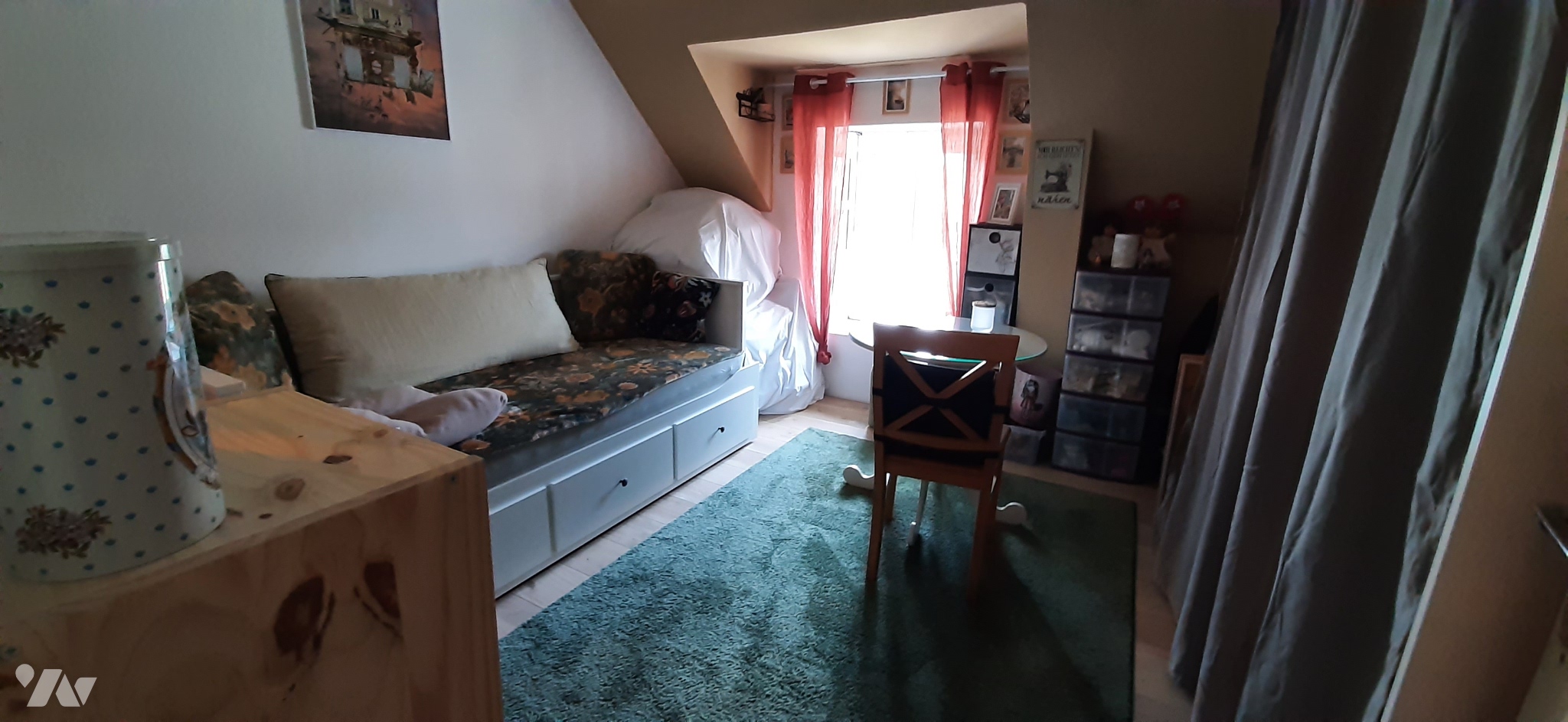 Rez-de-chaussée : véranda, pièce à vivre avec coin cuisine, buanderie/cellier, à l'arrière : salle d'eau, W.C.